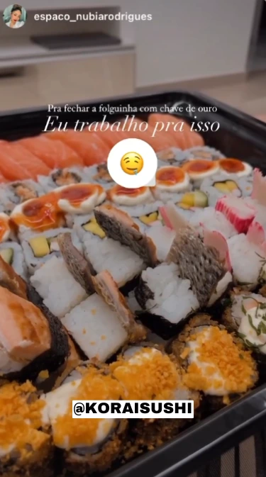 Entregaram dentro do prazo e o sushi é delicioso! Vou pedir mais loguinhoo